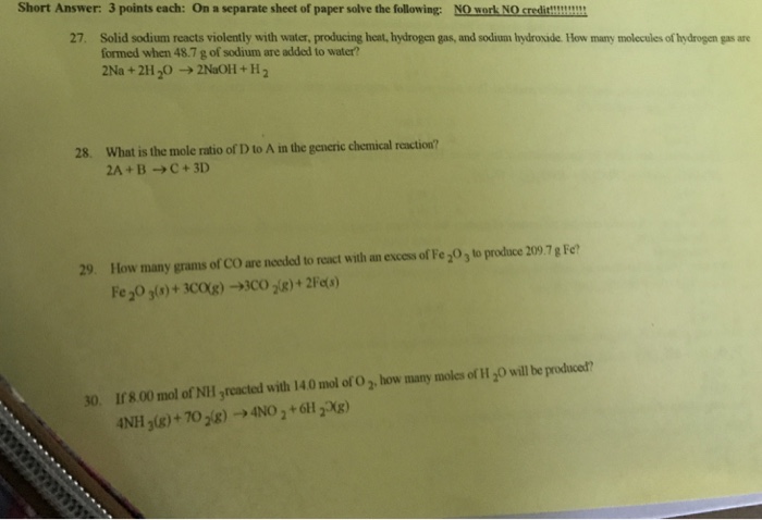 F small chunks of solid sodium are added to water. Calcium metal is added to a dilute solution of hydrochloric acid. Na4C H2O Æ C2H2 Na OH-5.