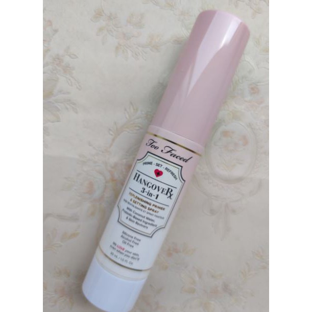 Too faced hangover spray. 20 e 40 ml. Our ultra-hydrating replenishing night serum makes your skin hydrated with a beautiful luminous glow while our SPF moisturizer nourishes and protects your skin. Too FacedHangover 3-in-1 Replenishing Primer Setting Spray.
